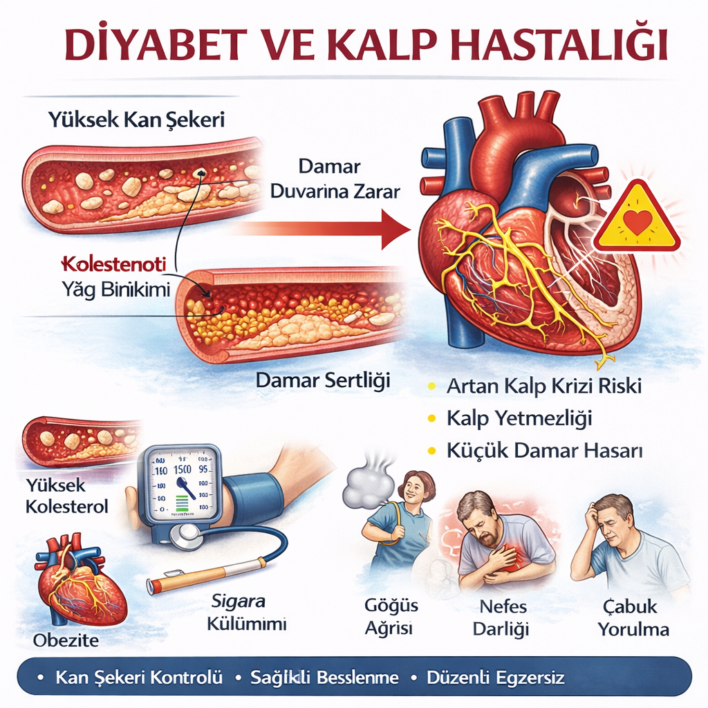 Diyabet (şeker hastalığı), kandaki şeker düzeyinin uzun süre yüksek seyretmesiyle ortaya çıkan kronik bir hastalıktır. Diyabet yalnızca kan şekerini etkileyen bir hastalık değildir; aynı zamanda damarları ve birçok organı da etkileyebilir. Bu nedenle diyabet, kalp ve damar hastalıkları için önemli bir risk faktörü olarak kabul edilir. Uzun süre yüksek kalan kan şekeri, damar duvarlarında hasara … Read more